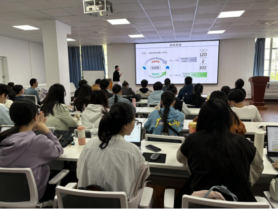 陈晨副教授的报告题目为“电催化碳氮偶联(Electrocatalytic C-N coupling)”。陈晨副教授提出常温常压电催化N2与CO2一步C-N偶联的新反应,可实现C-N键绿色可控构筑。围绕电催化C-N偶联所面临的关键科学问题,包括惰性键高解离能、多反应物种协同吸附活化与偶联机制,开展了原创性研究工作,首次实现常温常压电催化N2与CO2偶联,解析了偶联机制,为电催化C-N偶联体系的构建奠定基础。师生们对陈晨副教授的研究成果十分感兴趣,进行了热烈的提问、交流。