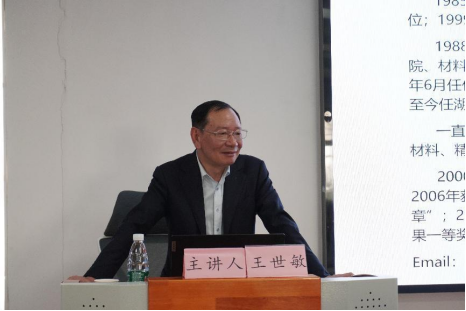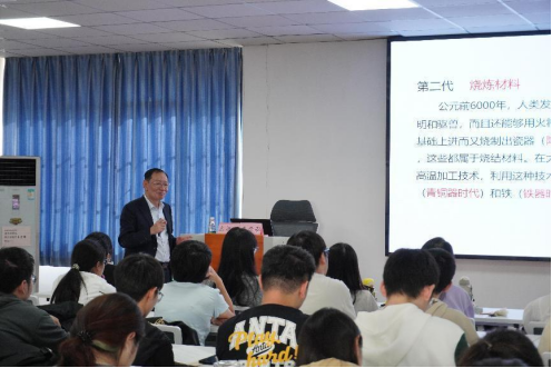 首先,王世敏校长从自身求学经历和教育教学经历出发,向同学们阐释化学专业具有良好的发展前景,鼓励同学们要对未来充满信心。随后,王世敏校长指出“材料是人类文明的物质基础,而化学是创造新物质的科学”,通过介绍材料科学的重要性、材料科学的内涵、材料的迭代更新与人类文明发展之间的关系,进一步强调“材料的进步引领人类社会发展”这一主题,并在此基础上向同学了普及了三次技术革命与工业革命相关知识。最后,班主任李玢洁再一次对王世敏校长的到来表示感谢,与同学们进行了友好互动,指出国家强大与人类发展息息相关。