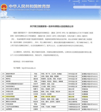 2025年8月21日,教育部高等教育司公布《关于第三批国家级一流本科课程认定结果的公示》,bat365王峥老师主持的《无机化学实验》获批国家级一流本科课程,这是bat365在本科课程建设领域取得的又一重大突破。
