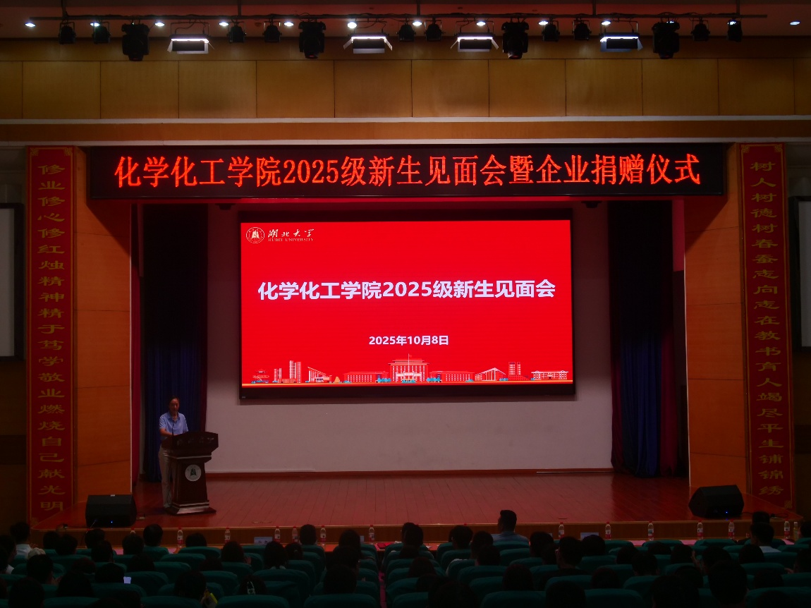 10月8日下午,学院在三号楼学术报告厅隆重举行“2025级新生见面会暨企业捐赠仪式”。学院领导班子成员、系主任、研究生教学秘书、本科生教学秘书、新生班主任、辅导员、全体新生以及武汉鑫辉航奕环保工程有限公司负责人参加活动。会议由院党委副书记刘莹主持。