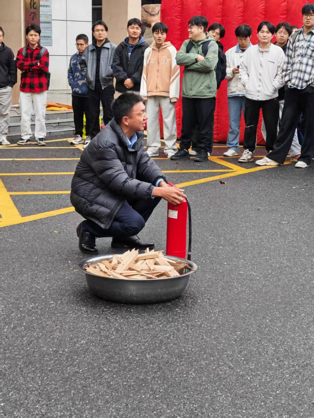 在消防实战演练时,师生系统学习了灭火器的适用场景与操作原理,逐一亲身体验灭火器使用操作,精准掌握“拔销、对准、按压”等关键动作。在火灾现场逃生演习中,师生按照指引低姿弯腰、湿毛巾捂鼻,沿预定疏散路线快速有序撤离至安全区域,完整模拟了火灾应急逃生全过程。本次消防实战演练,有效提升了大家的安全防范意识与应急处置能力,切实达到了“以学促防、以练强能”的演练目的。