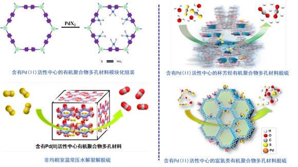 (1)新颖钯(II)基有机聚合物多孔材料的设计、制备与催化水解脱硫性能研究。